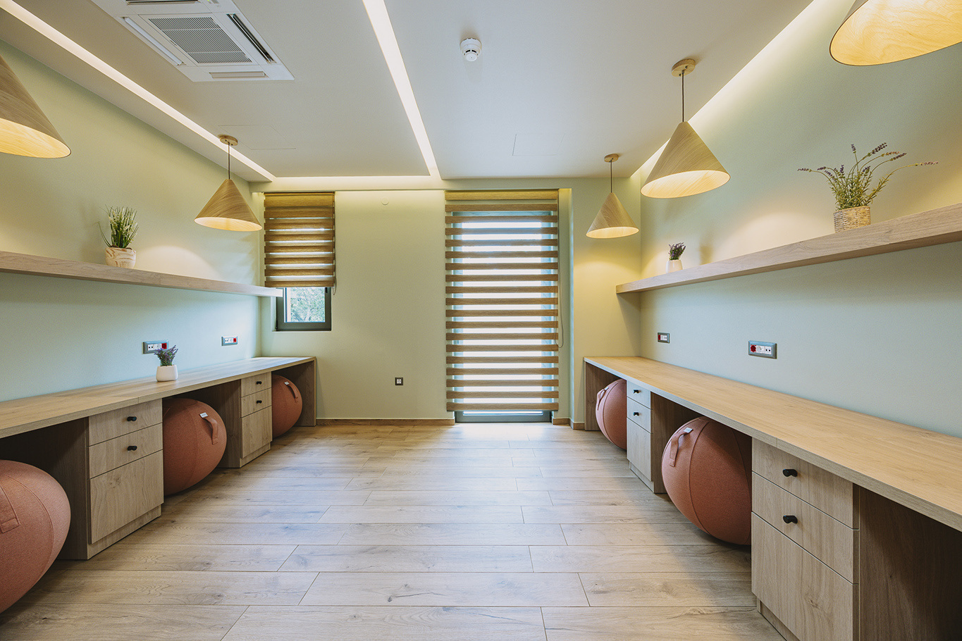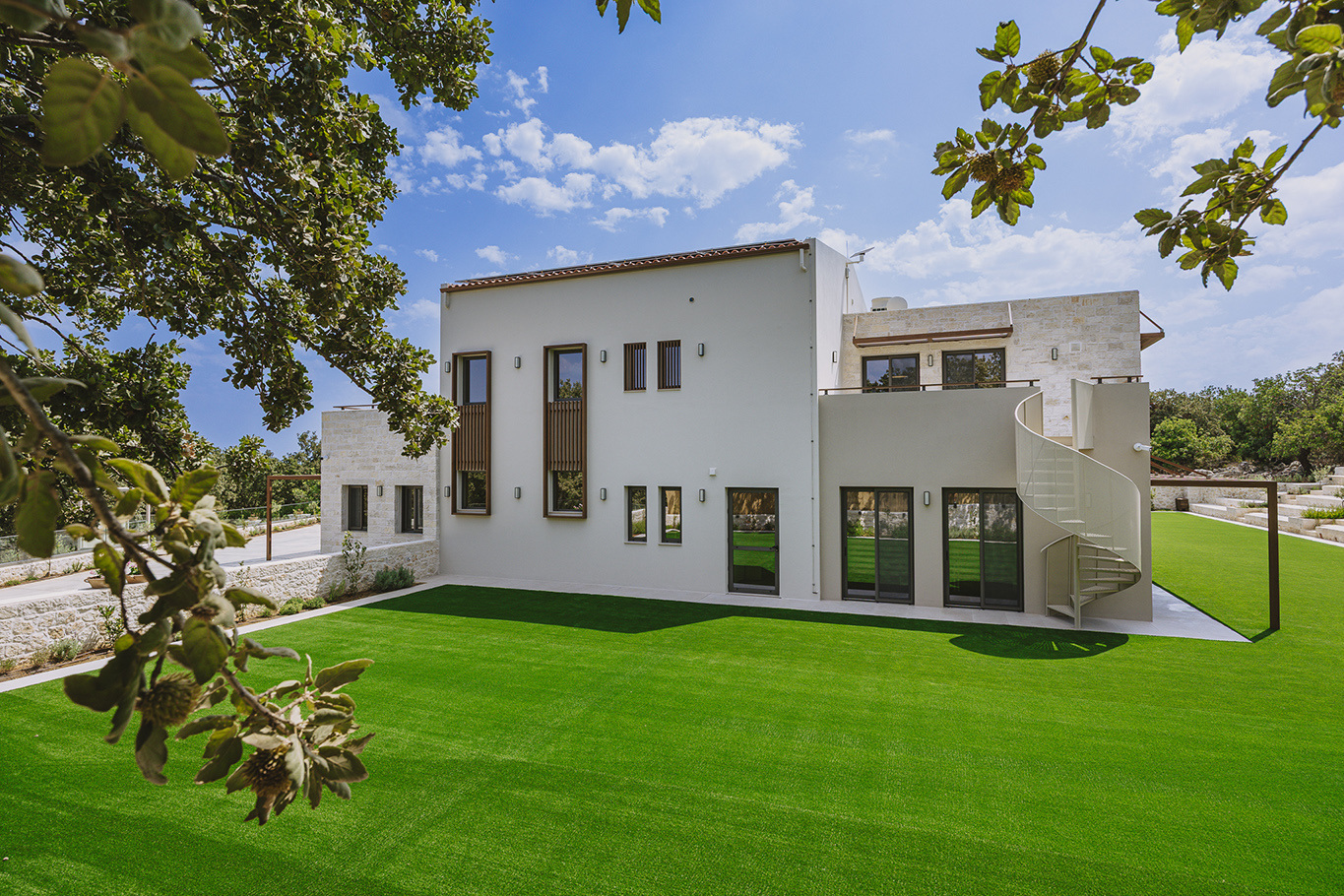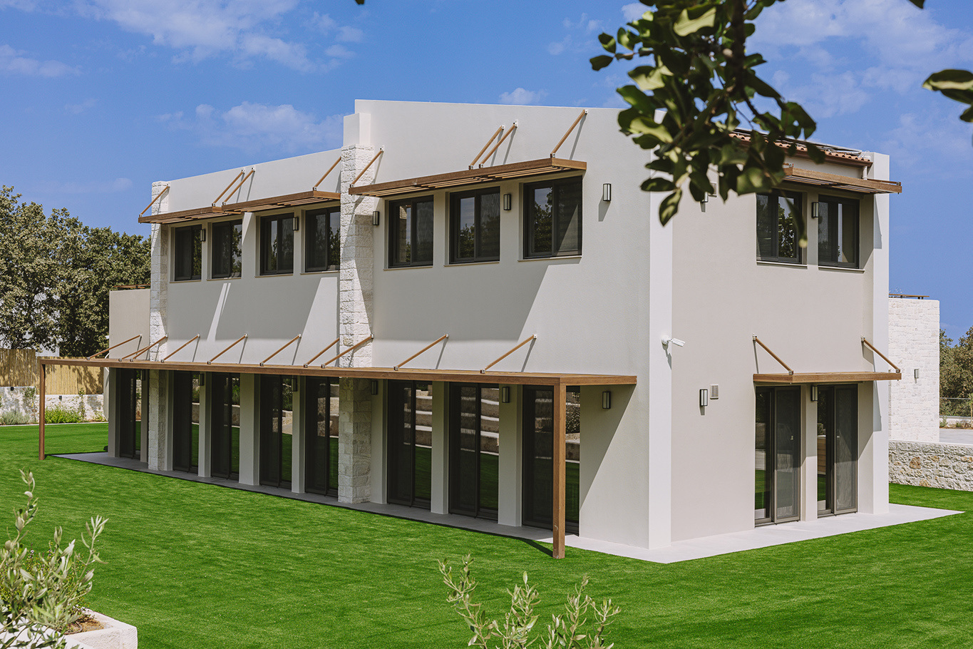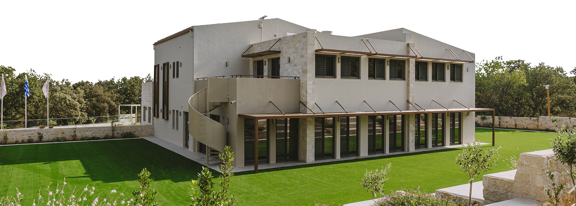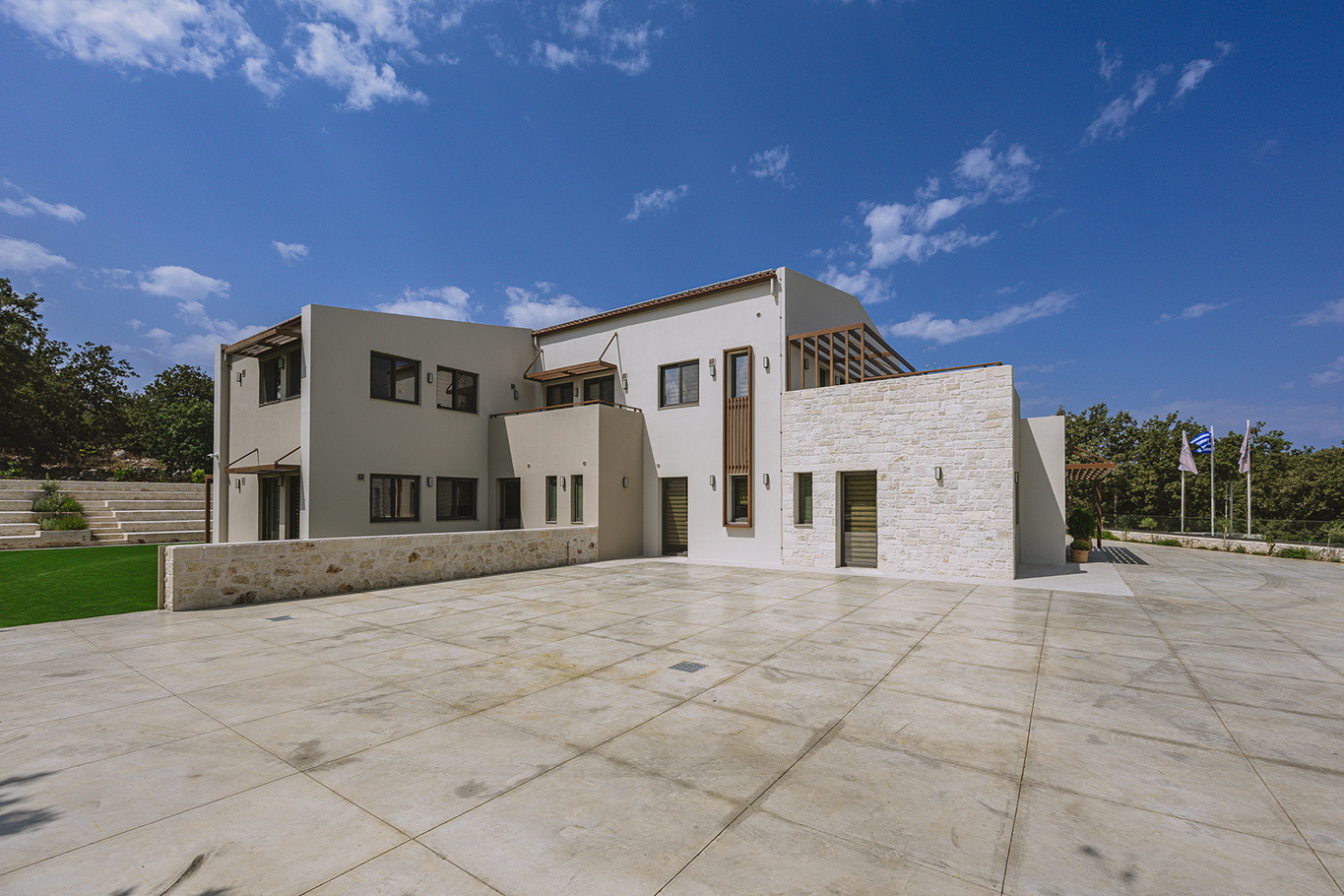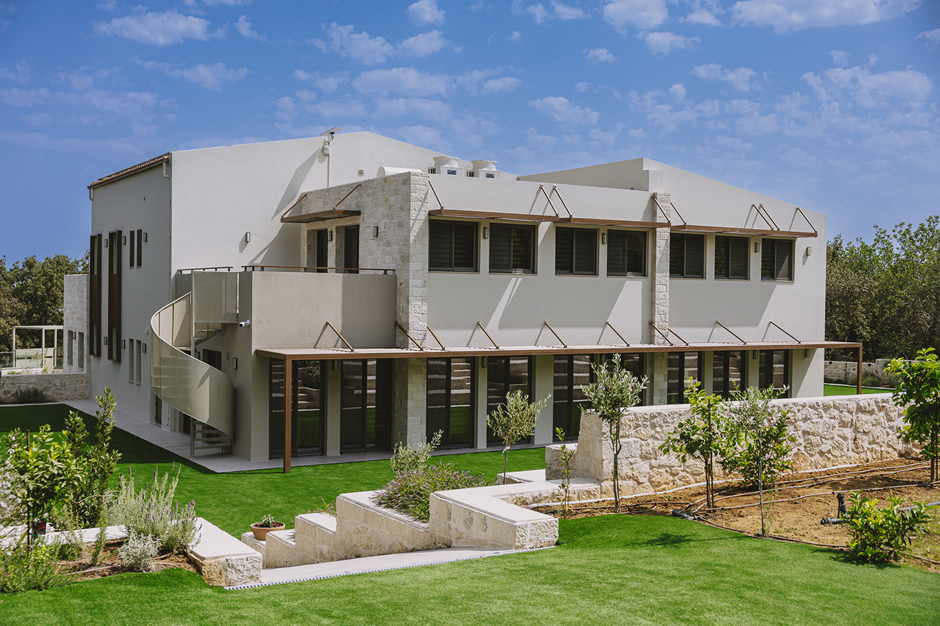 The 600 m2 building blends traditional and modern architectural elements, harmoniously integrated into the natural surroundings. Every area is meticulously designed to facilitate experiential learning, free expression, and children’s development: