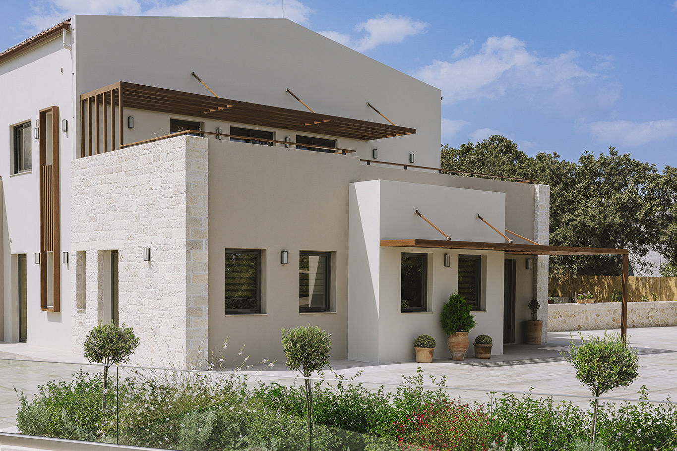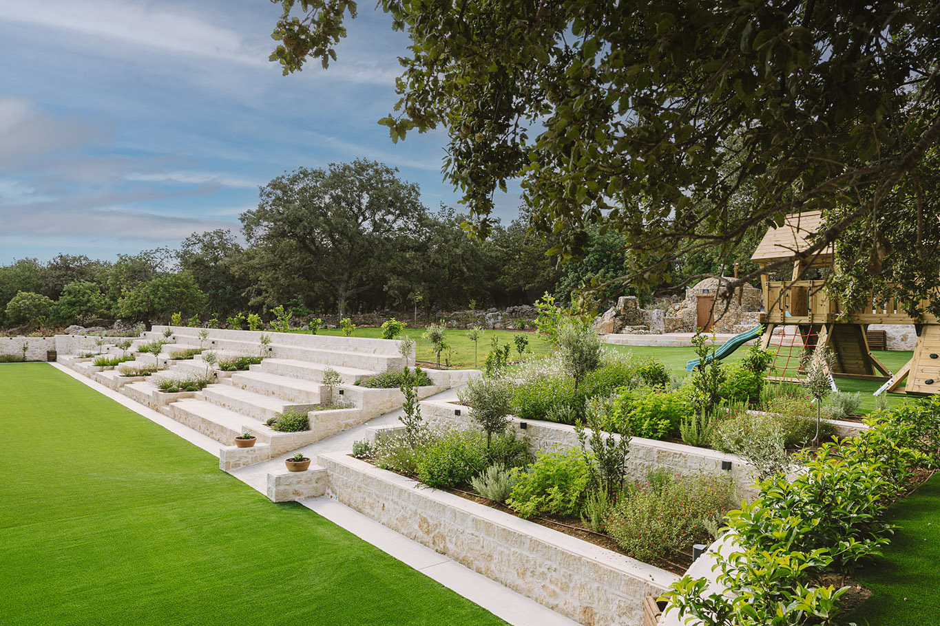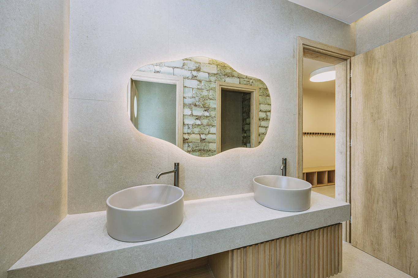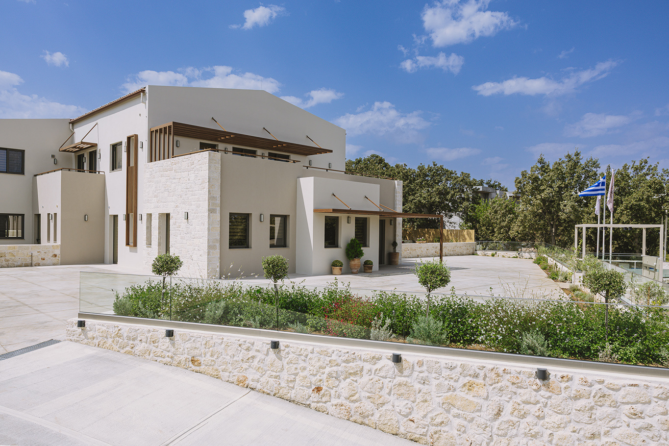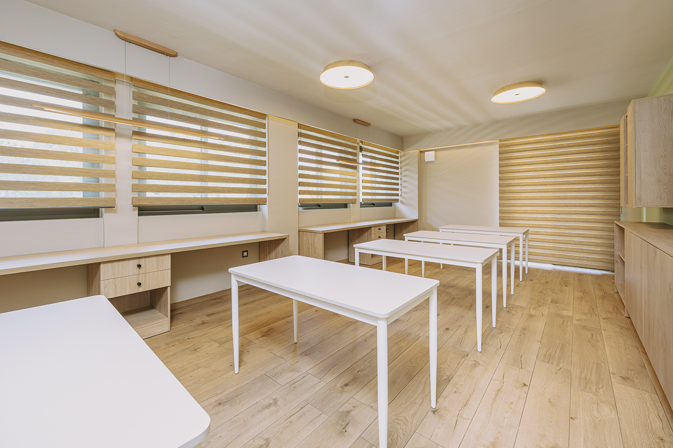 The 600 m2 building blends traditional and modern architectural elements, harmoniously integrated into the natural surroundings. Every area is meticulously designed to facilitate experiential learning, free expression, and children’s development: