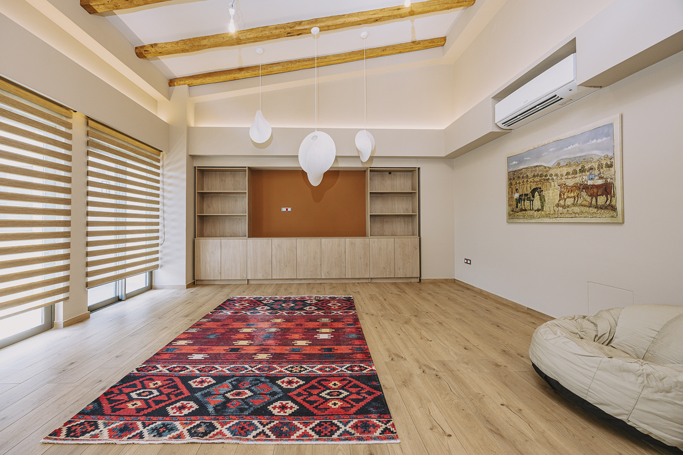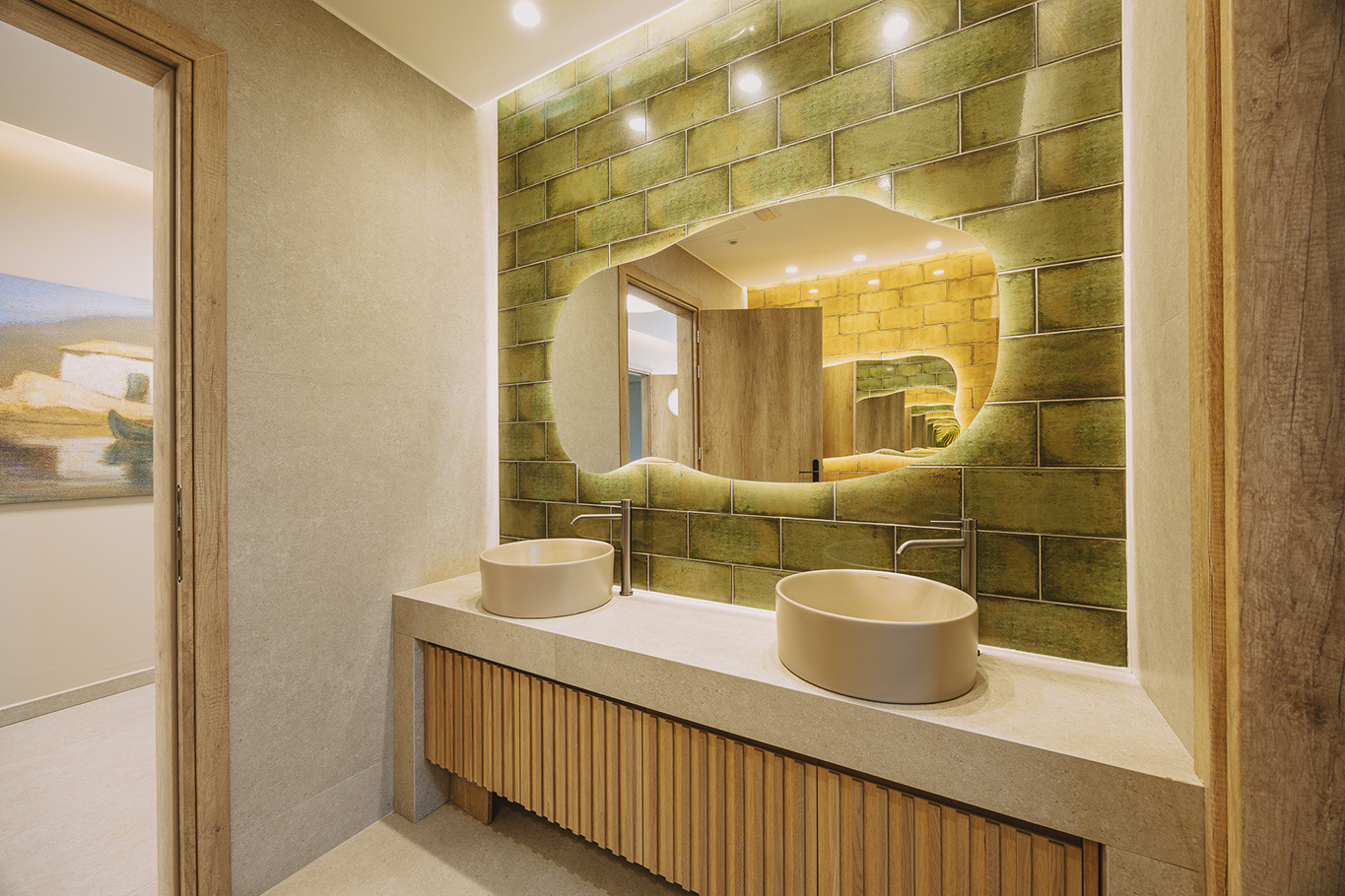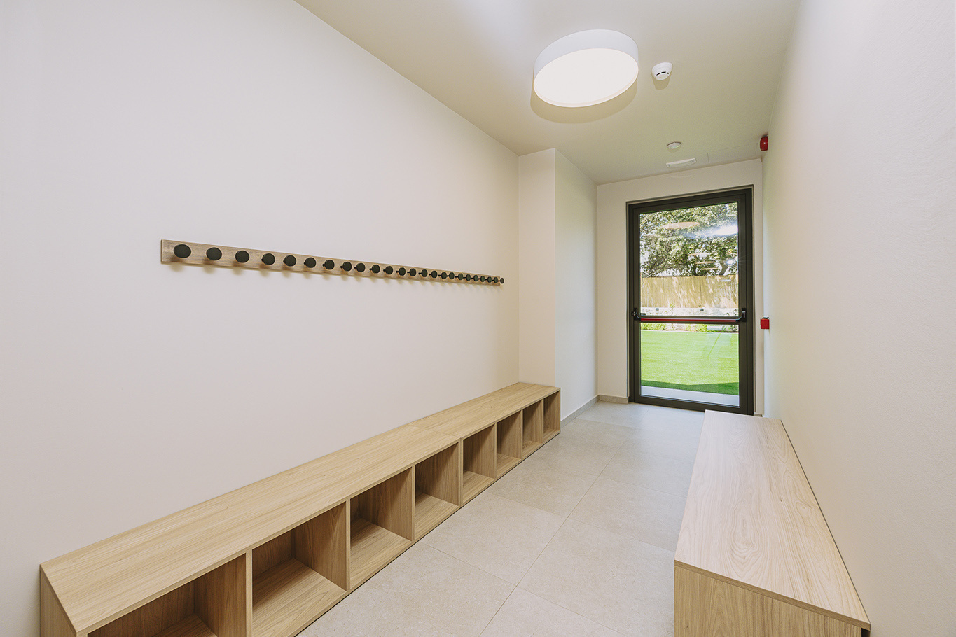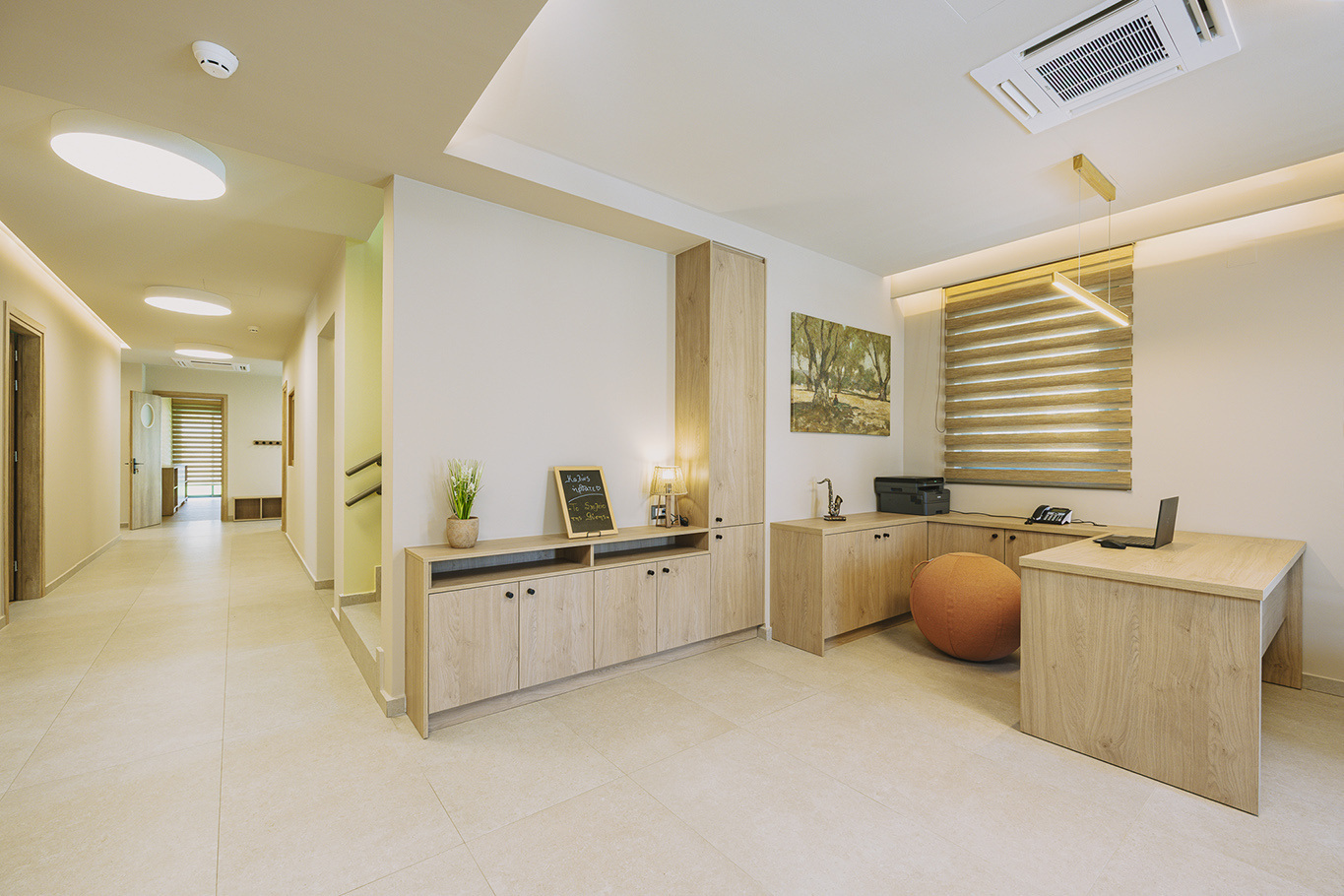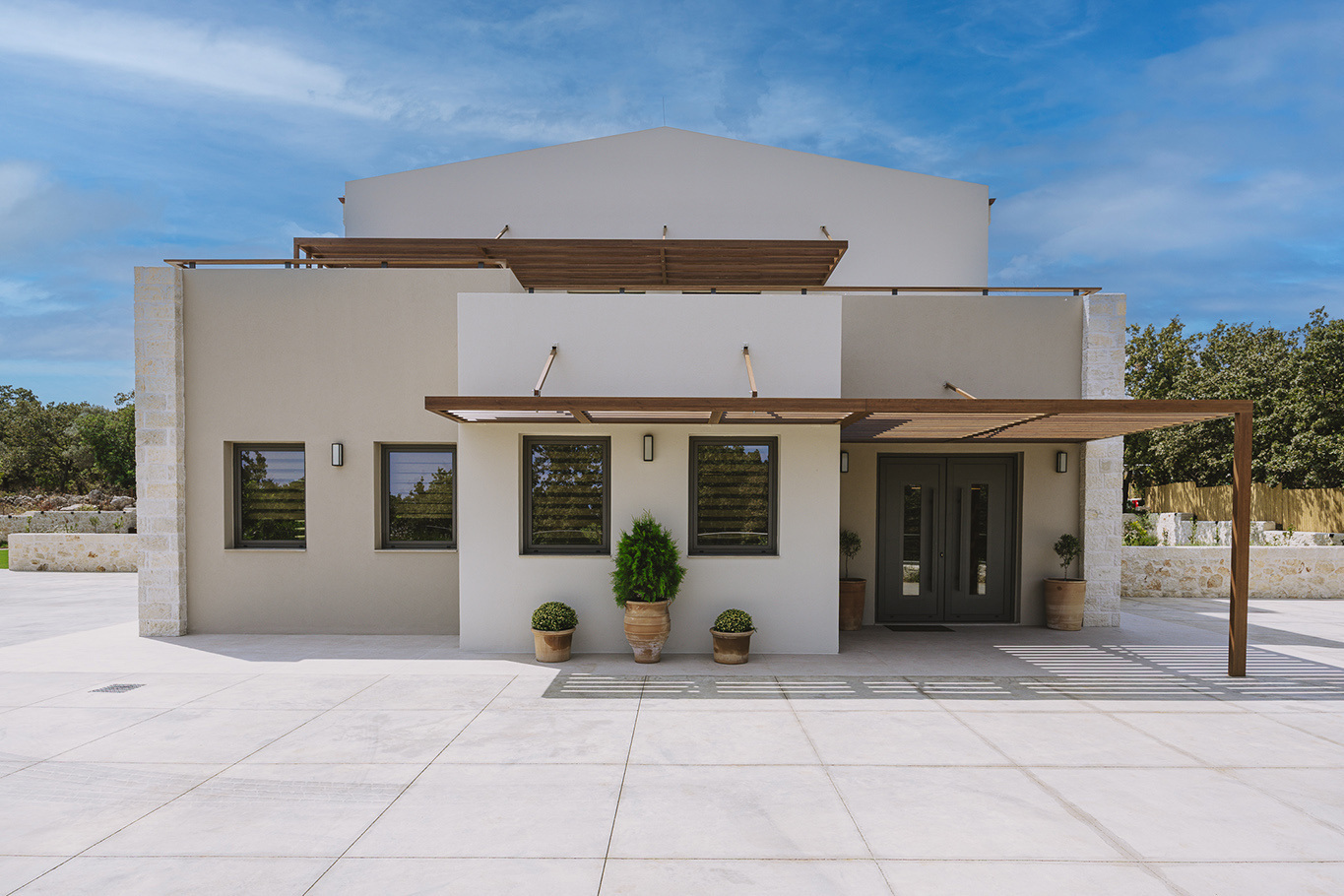The 600 m2 building blends traditional and modern architectural elements, harmoniously integrated into the natural surroundings. Every area is meticulously designed to facilitate experiential learning, free expression, and children’s development: